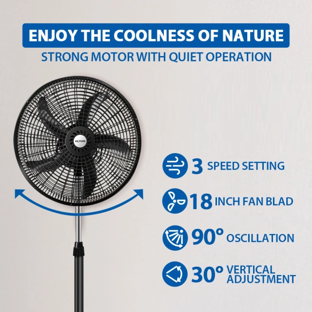 Beat the heat and enjoy a refreshing breeze with the Ailyons 18-Inch Standing Fan. Order yours today and experience the perfect blend of comfort and convenience!