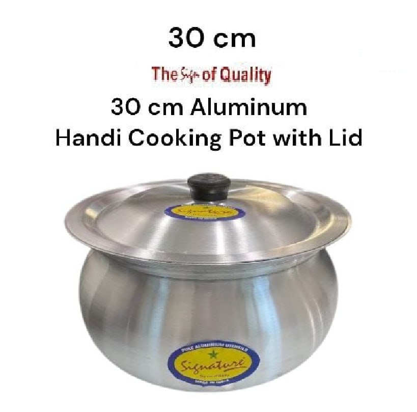 Unlock the full potential of your cooking with our Signature Aluminium Handi Cooking Pot with Lid. Its sturdy aluminium construction ensures even heat distribution for delicious meals, while the tight lid preserves flavors and nutrients. Elevate every dish and elevate your cooking game with this 30cm, pot.