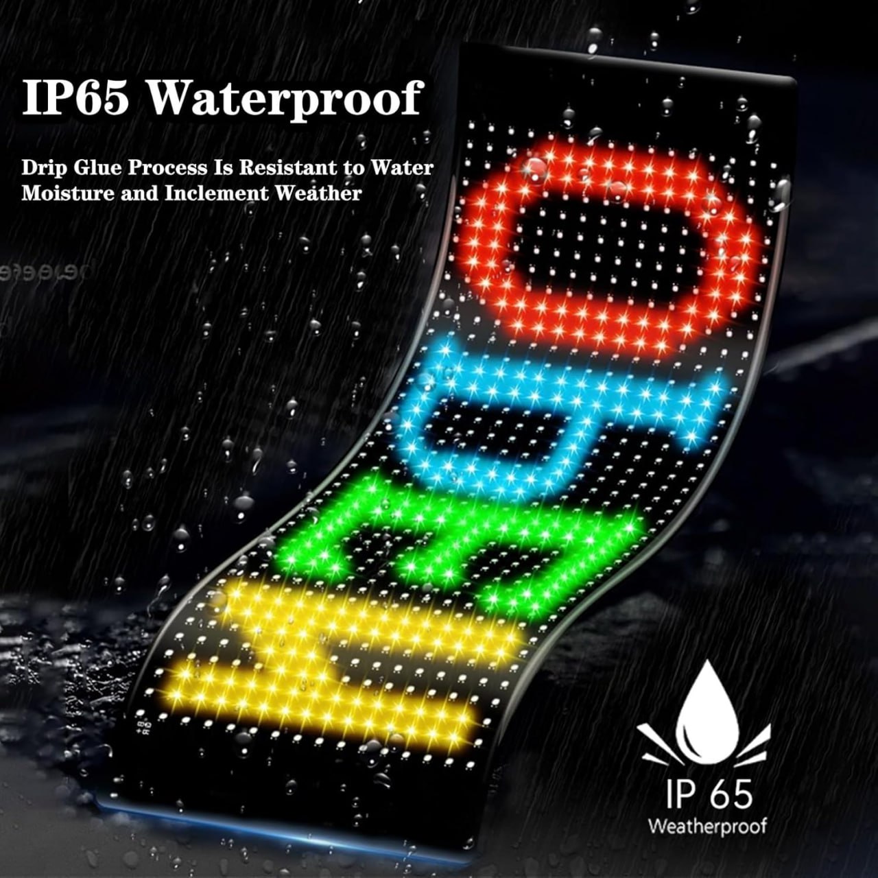 Programmable Flexible Matrix panels are drip-adhesive waterproof and can withstand outdoor environments with an IP65 waterproof rating, ensuring functionality and durability in all weather conditions.