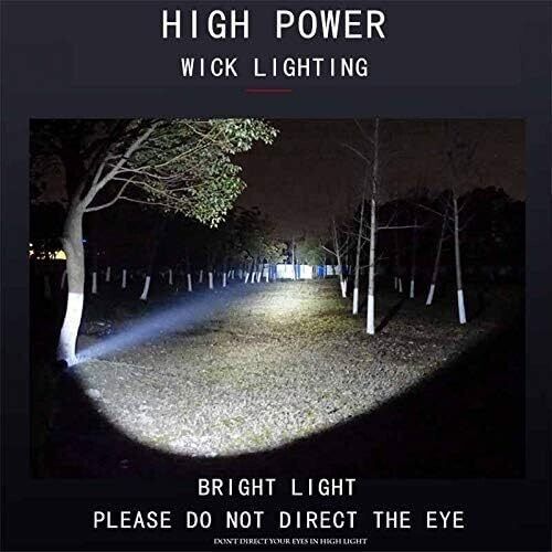 ADJUSTABLE ZOOM & 5 LIGHT MODES – 5 light working modes (High>Medium>Low> Strobe>SOS) and zoom adjustable focus light with long distance reach 500~800 meters. Ultra high lumens, please don’t light up the light directly face to anyone’s eyes.