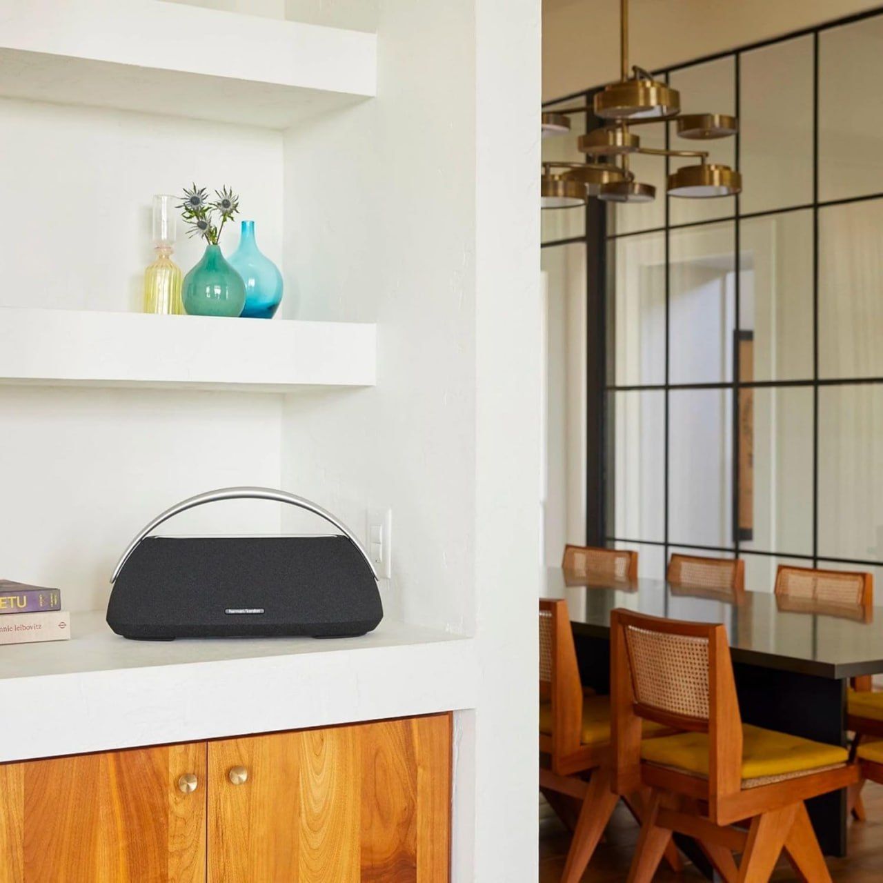 Harman Kardon's Go + Play 3 has a familiar shape but in its latest generation features a tempered glass-top touch panel that is responsive and completely intuitive to use. The grille fabric is subtly eye-catching, and the sleek but sturdy high-quality aluminum handle is ergonomically designed to make it easy to carry around your home.