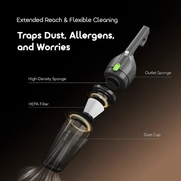 Equipped with a washable HEPA filter, this vacuum captures 99.99% of dust particles, ensuring cleaner air for your home. Simply rinse and reuse for long-term performance and eco-friendly cleaning