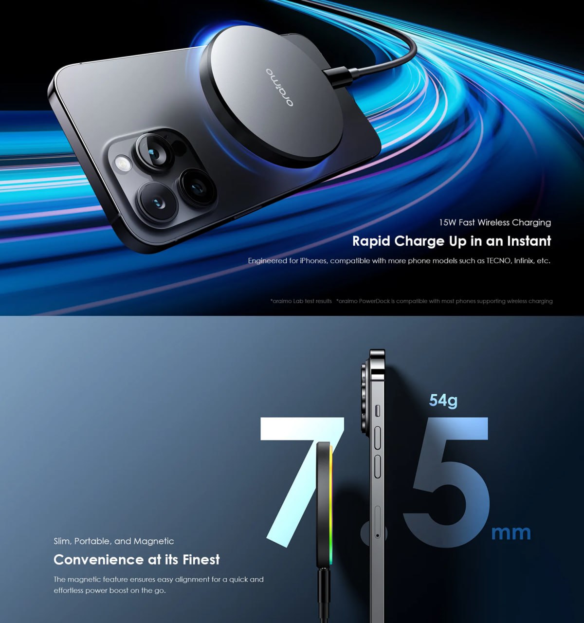 oraimo PowerDock 15W Magnetic Wireless Charging Pad;