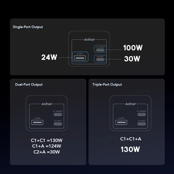 Output(C1+C2): 100W+30W (Total 130W Max)