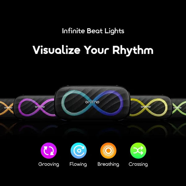 Innovative infinite lightshows makes your music into a visual spectable based on exclusive beat adaptive algorithm. Customize infinite light motions and colors by oraimo sound app to glow your party.