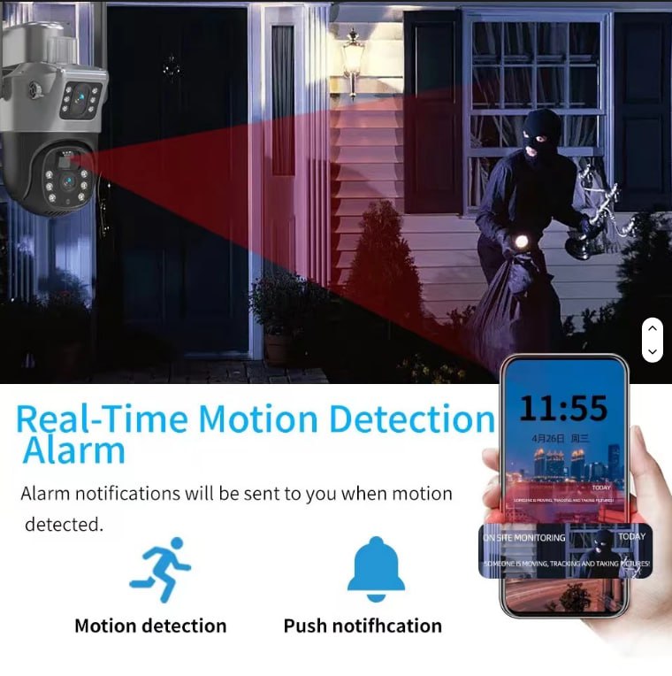 Smart PIR Motion Detection: Intelligent vigilance at its best. Powered by a highly sensitive PIR sensor coupled with AI precision, false alarms become obsolete. Detect only what matters.
